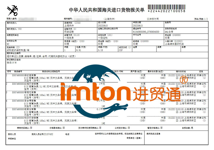 我司進口報關代理服務:從印度到上海浦東國際機場香薰一般貿易進口報關,航空運輸,成交方式:CIF,目的地:上海市浦東新區